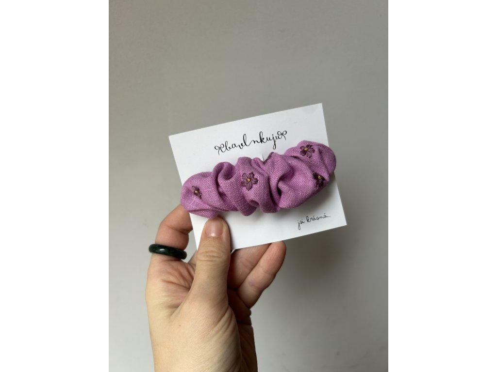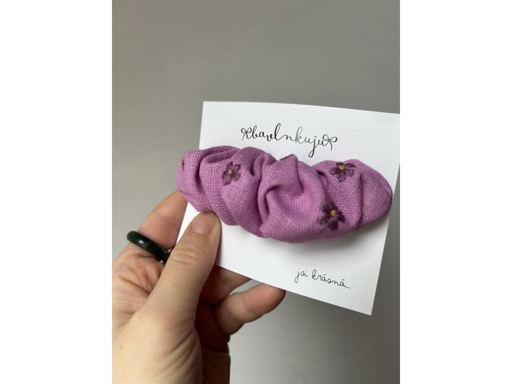 Pro všechny milovnice téhle krásné fialovo-růžové barvičky bude tenhle doplněk do vlasů, který kombinuje funkčnost scrunchie gumičky a pevnost klasické spony, jasný must have . Sponchie je připevněna na francouzské sponě o velikosti 10 cm .